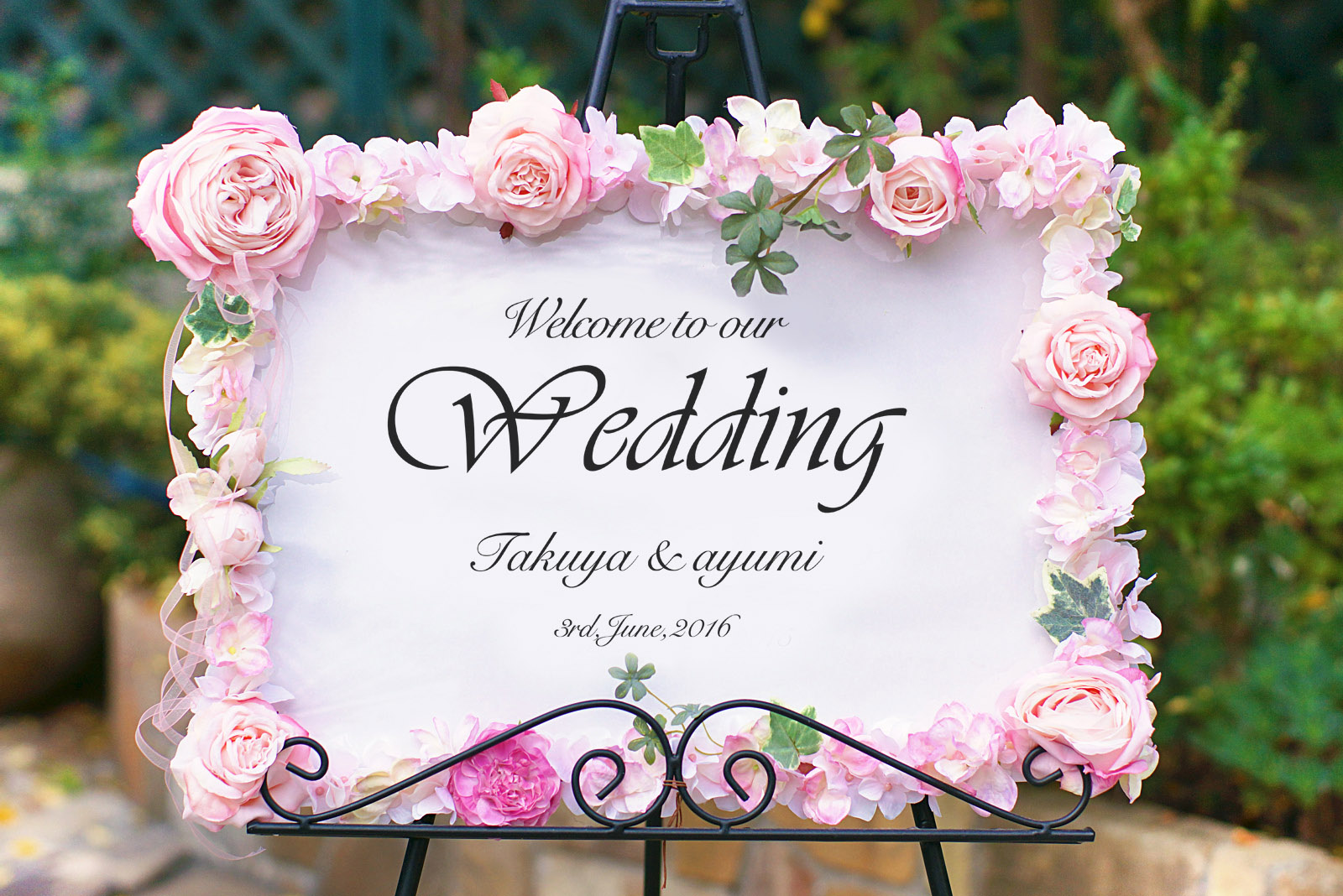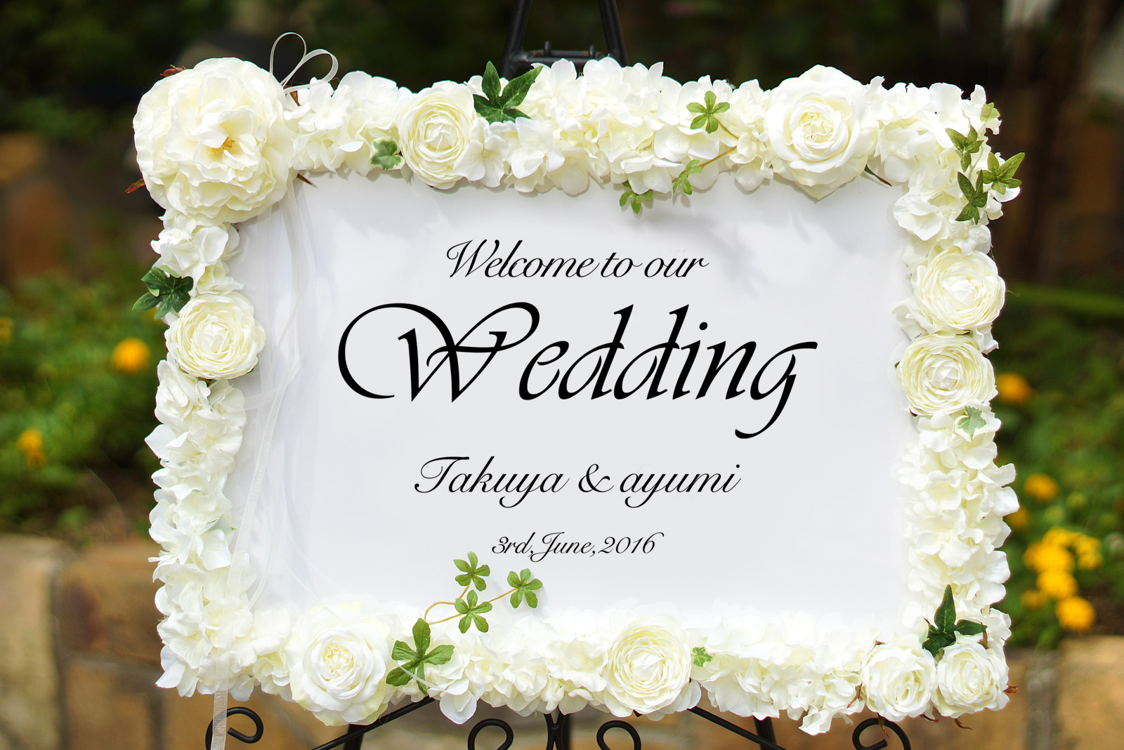 ブライダルフラワーも手掛けるDearBouquetのオリジナルアーティフィシャルフラワーウェルカムボードです。