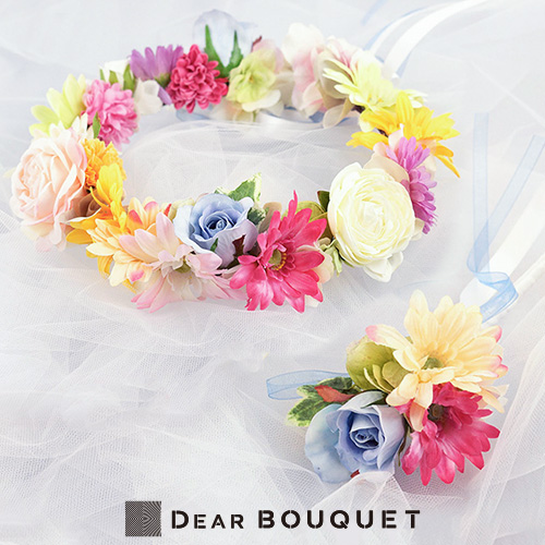 ウェディング 花冠 花かんむり + ブートニア セット 結婚式 カラフル ウェディングヘッドドレス